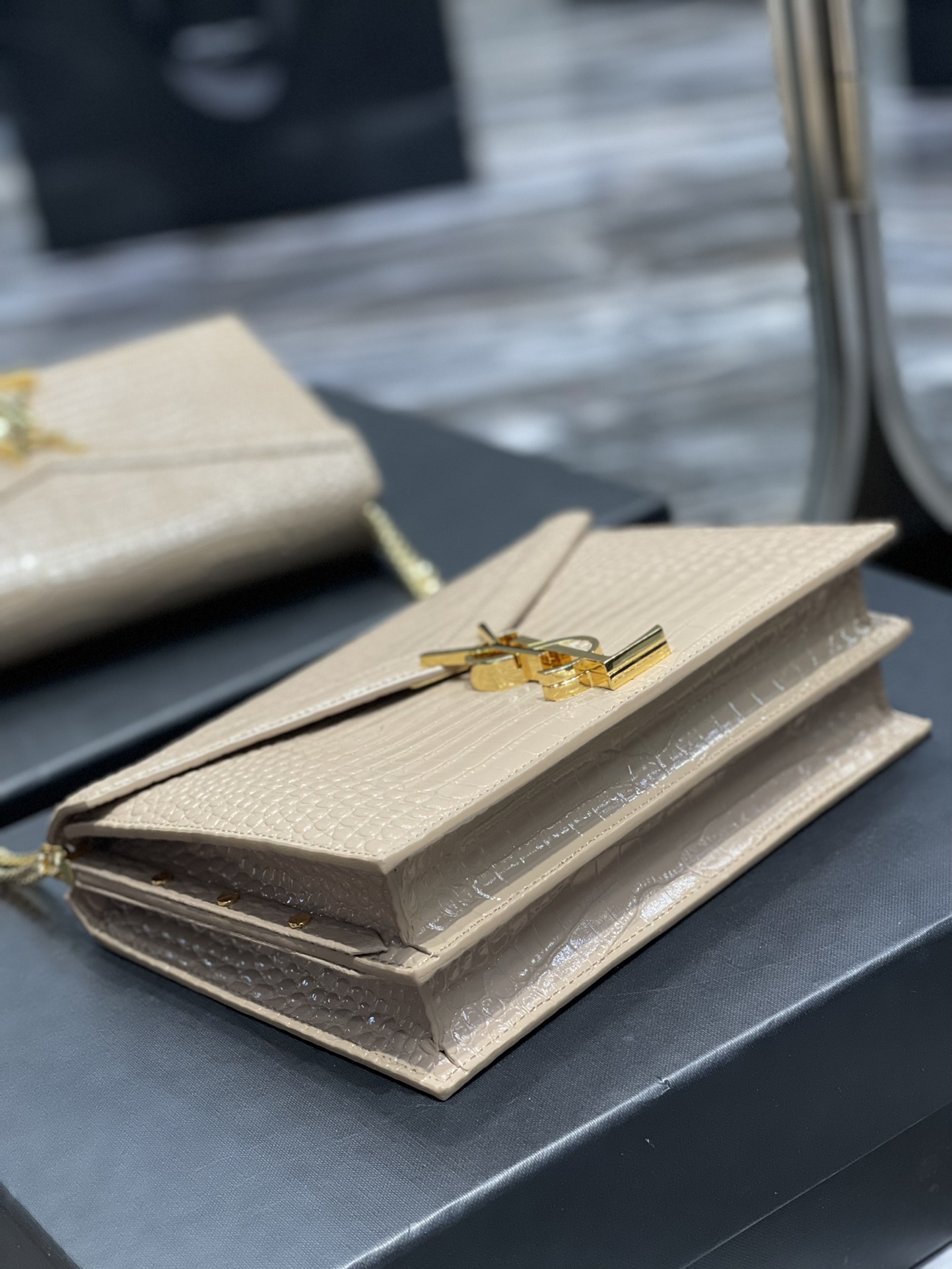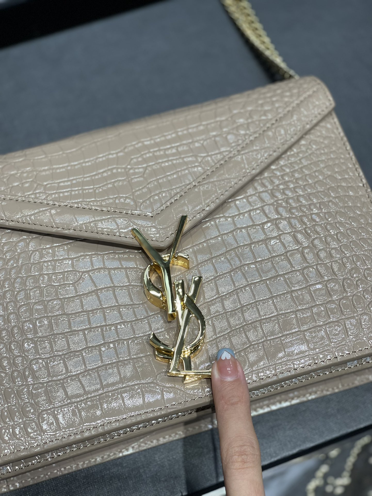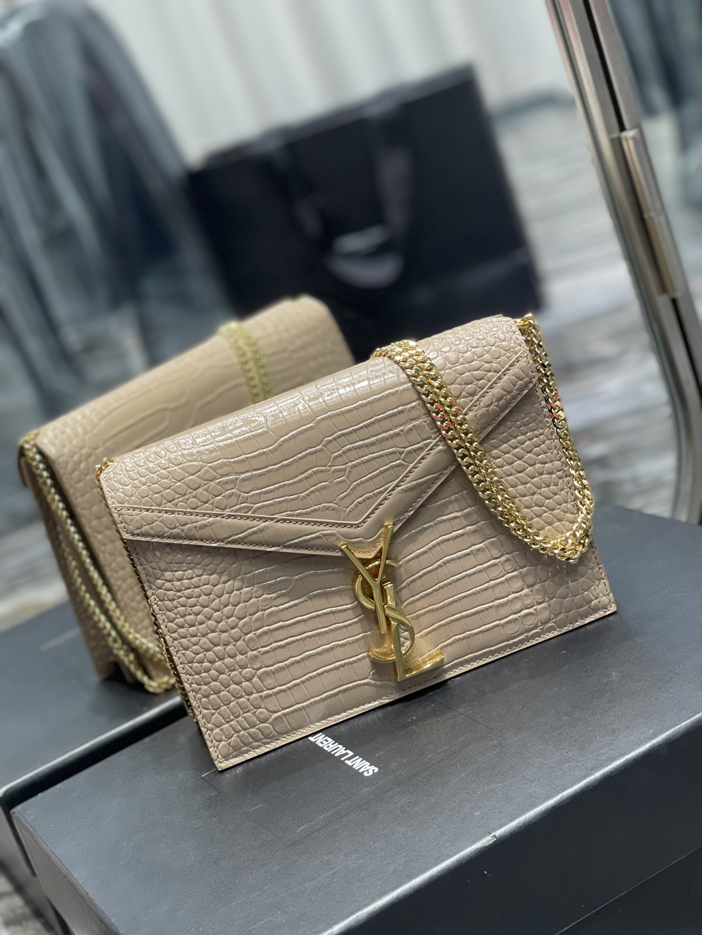 Y Cassandra Medium Chain Bag Dark Beige In Grain De Poudre Embossed For Women 8.6in/22cm Y 532750DND0J2721