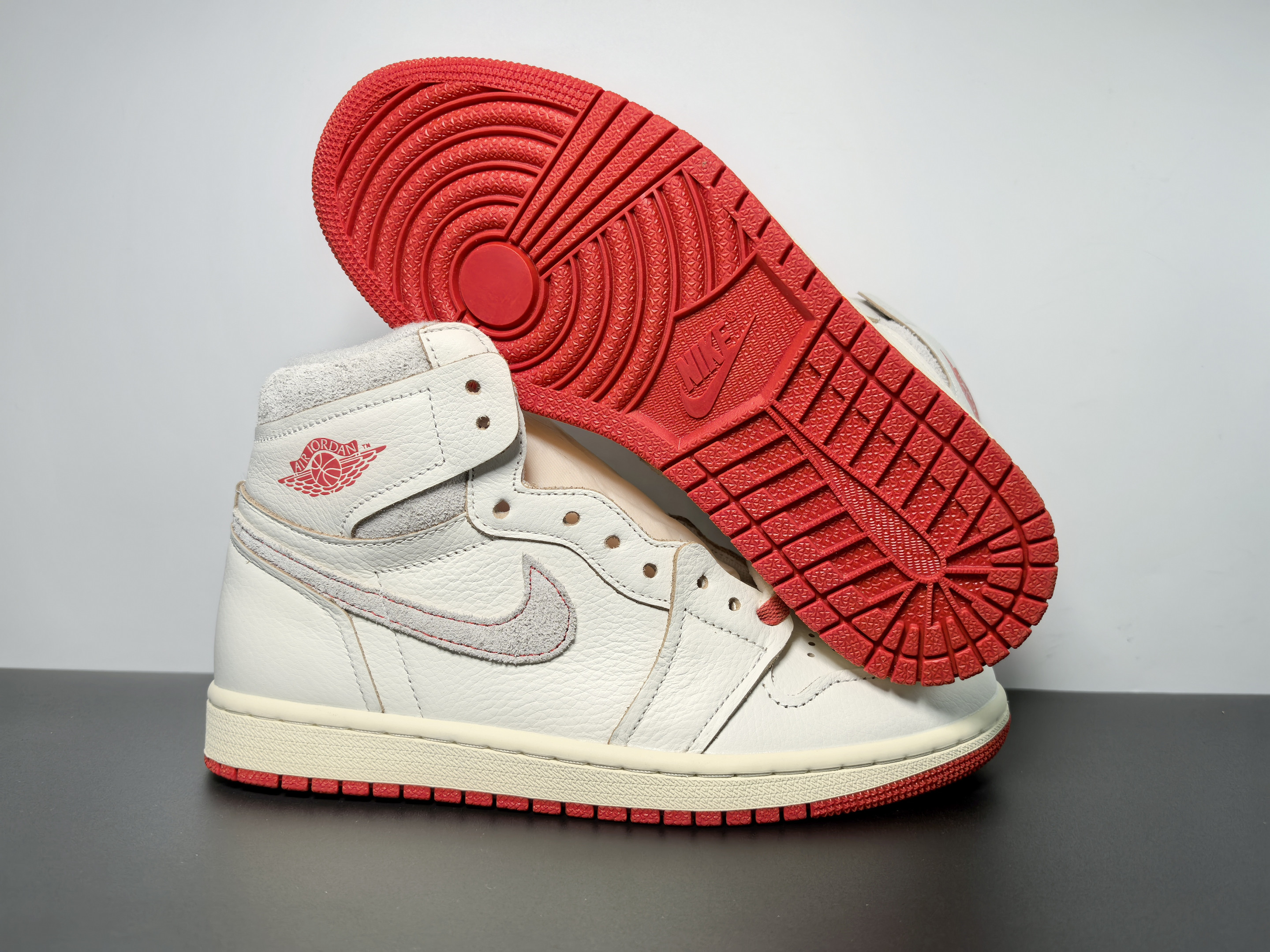 - Design: The Cinnabar colorway features a vibrant red (Cinnabar) leather upper, complemented by black overlays and a white midsole for a striking and bold look.