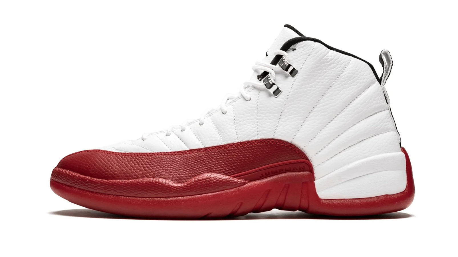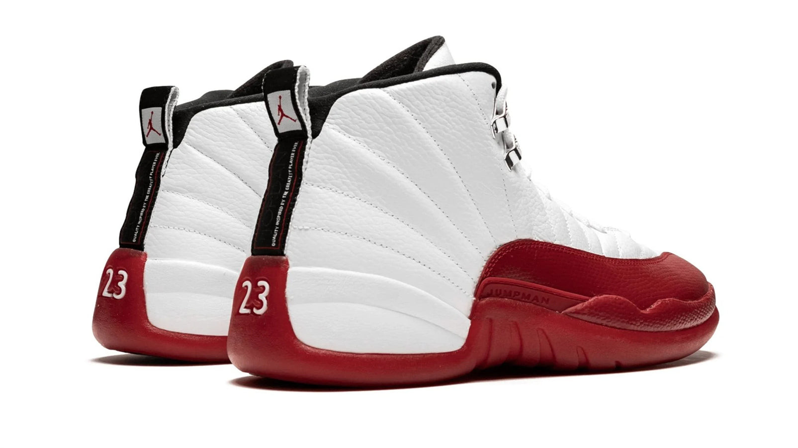 The Air Jordan 12 ��Cherry�� is an original colorway of Michael Jordan��s twelve signature design with Nike��and first official Jordan Brand model��from 1997. Worn throughout the 1996-97 NBA season while a member of the legendary Chicago Bulls, Jordan soared to new heights while wearing the premium model. The upper is constructed of white leather base with bold red pebbled leather contrasting along the toe, forefoot and mudguard. Silver top eyelets along with embroidered black Jumpman detailing on the tongue and a black nylon heel tab with additional Jumpman branding are signature design aspects of the Air Jordan 12. Completing the look is a white and red sole with ��23�� on the heel and ��Jumpman�� written on the midsole. This retro of the Air Jordan 12 "Cherry" was released on December 19th, 2009.