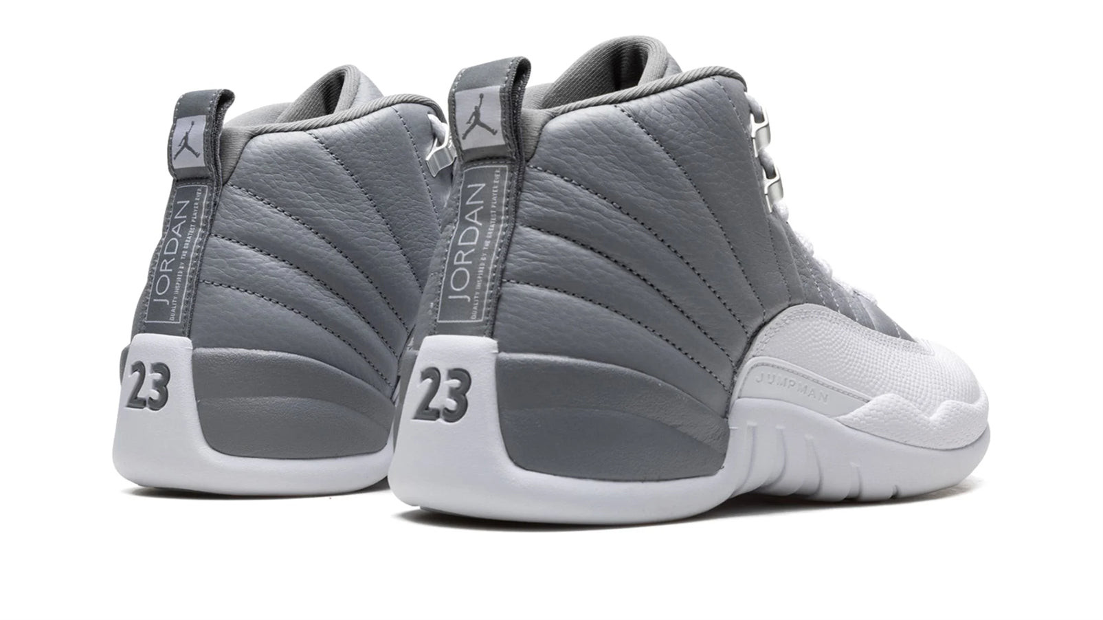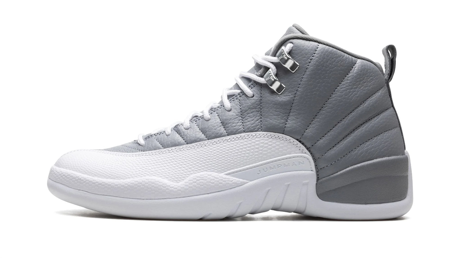 The Air Jordan 12 ��Stealth�� is a versatile, two-tone grey-and-white colorway of the retro basketball shoe. Originally released in 1997, the Jordan 12 was worn by Michael Jordan with the Chicago Bulls during the ��96-97 NBA season, and in the ��97 NBA Playoffs. Here, the ��Stealth�� honors the shoe��s 25th anniversary, and it doesn��t disappoint. Details include a Stealth Grey tumbled leather upper paired with a white pebbled mudguard. The color block is reminiscent of the Jordan 12��s ��Obsidian�� colorway. Metallic Silver eyelets appear on the collar, and a grey nylon pull tab is found on the heel. Tonal ��Jumpman�� branding appears on the lateral side of the midsole. Release date: August 27, 2022