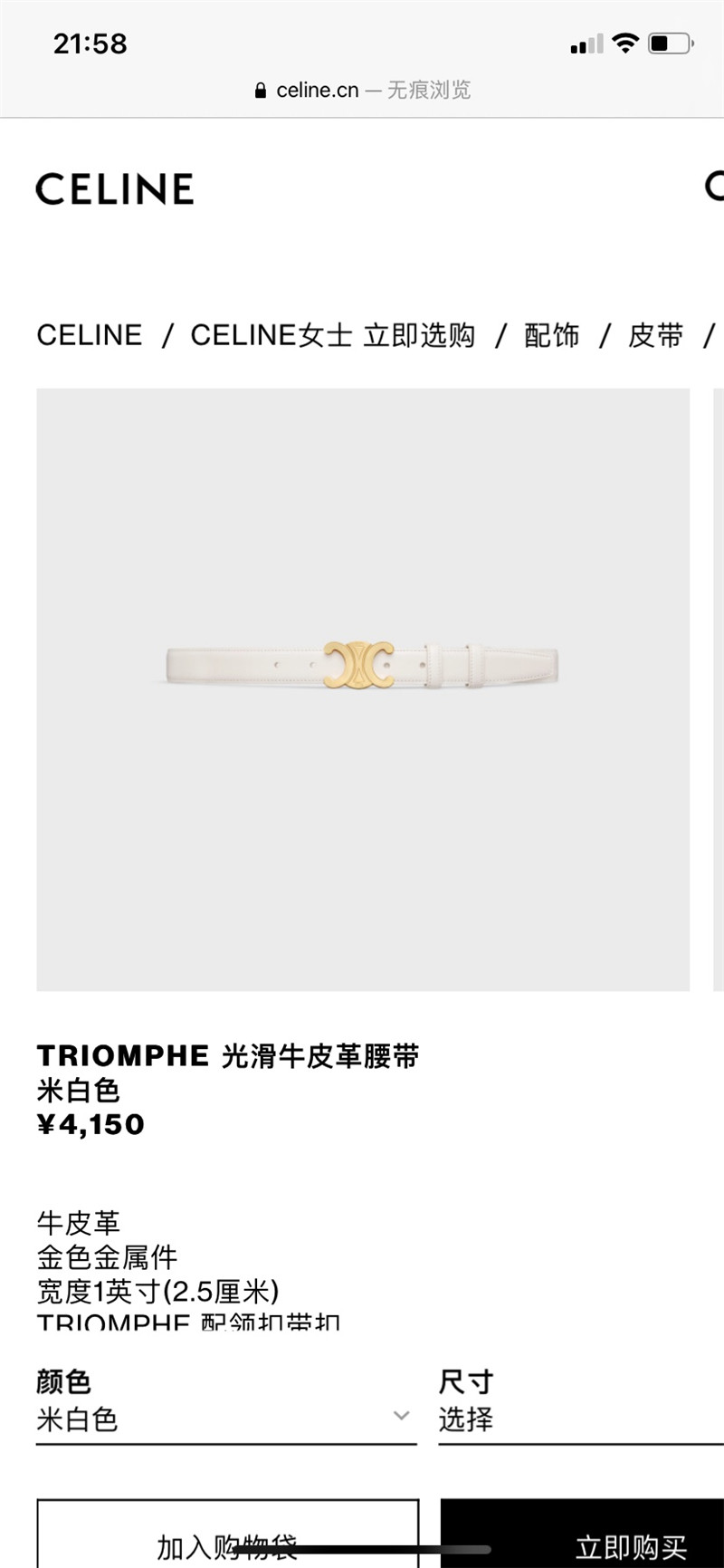 • celine reversible belt in original smooth calfskin WWW