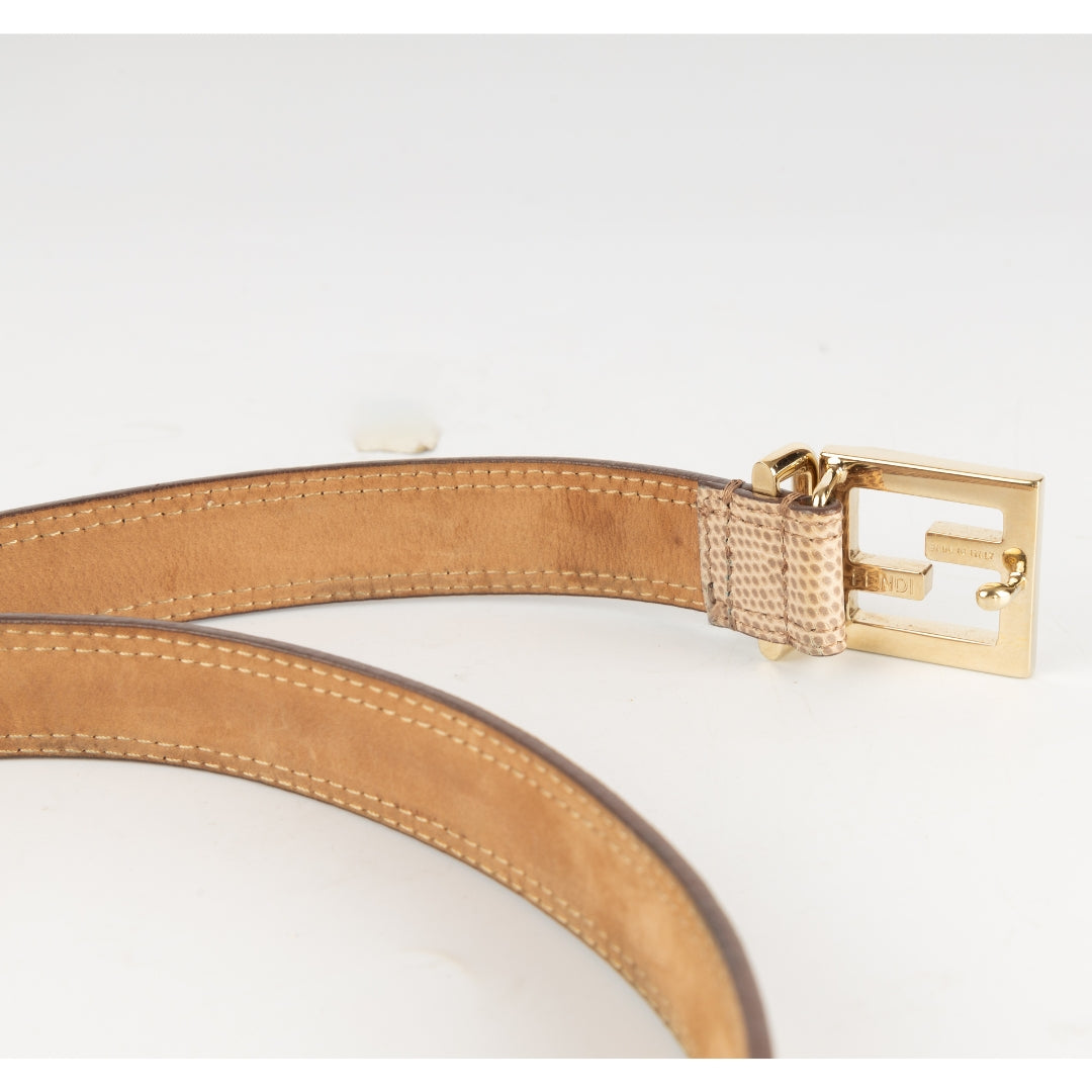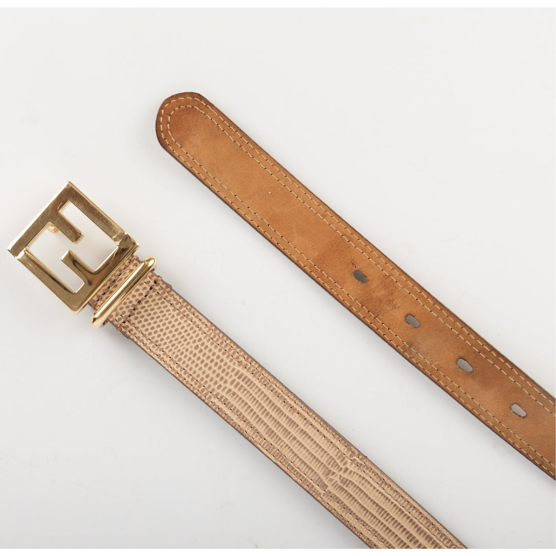 • Fen di Leather Gold Logo Buckle Belt WWW