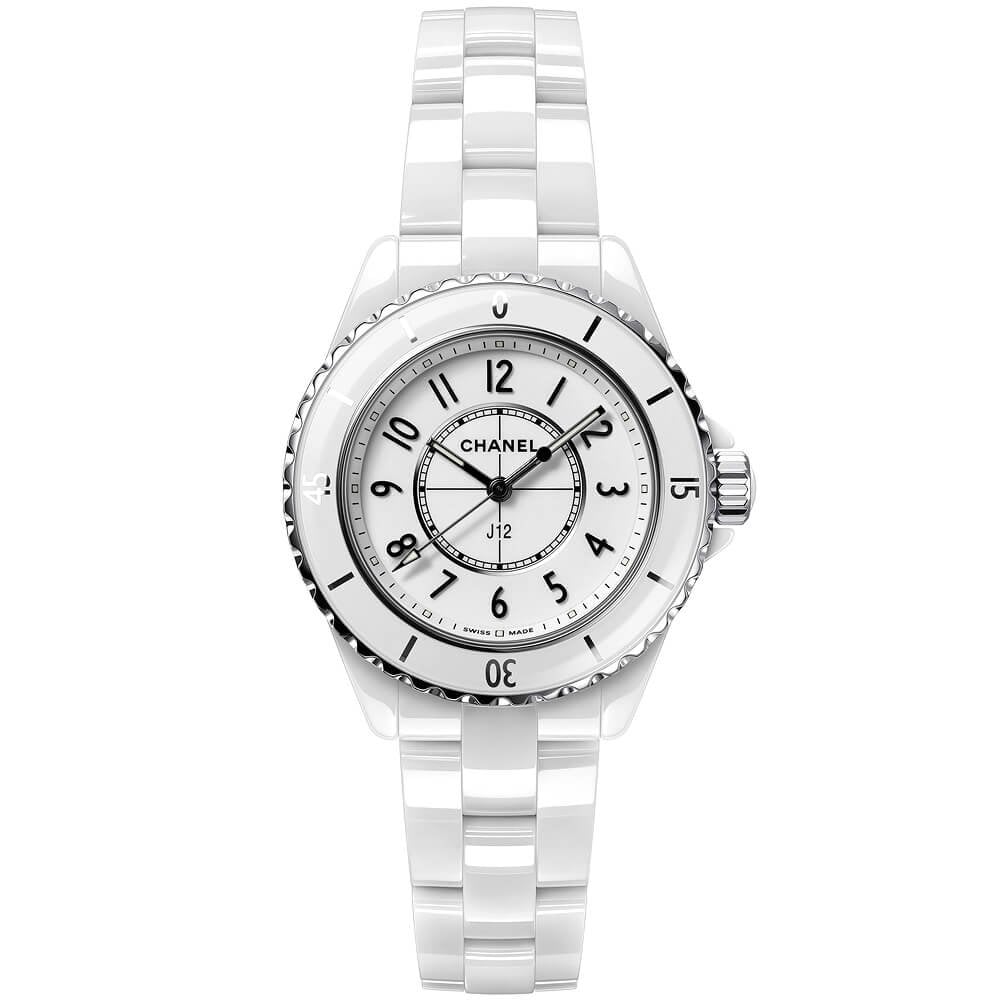 It took a total of 7 years to develop the concept of the J12 watch – a combination of clean lines, state of the art technology and timeless aesthetics. Twenty years later and the J12 was reimagined by the director of the Chanel Watch Creation Studio without altering its identity. Always appearing light and in motion, the J12 watch transcends time. This 33mm lady’s watch has been crafted from highly resistant white ceramic and stainless steel. Equipped with 200-meter water resistance, the watch Features a steel unidirectional rotating bezel with clear markers, surrounding a white lacquered dial adorned with legible Arabic numerals. The display, which is also protected by a scratch resistant and anti reflective pane of sapphire crystal glass, Features the signature inner minute track and baton-shaped hour markers too. Inside the robust case of this lady’s Chanel J12 watch is a high precision quartz movement. The watch is completed on a sleek white ceramic bracelet with a robust stainless steel triple folding clasp.