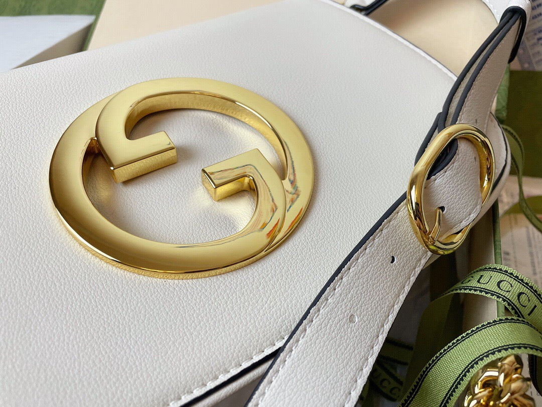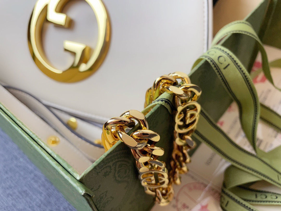 Coming from the House's archives. a round shaped version of the Interlocking G logo is reintroduced for Gc Love Parade. Crafted from white leather. this shoulder bag is completed by a delicate chain strap. infusing this accessory with a refined feel.