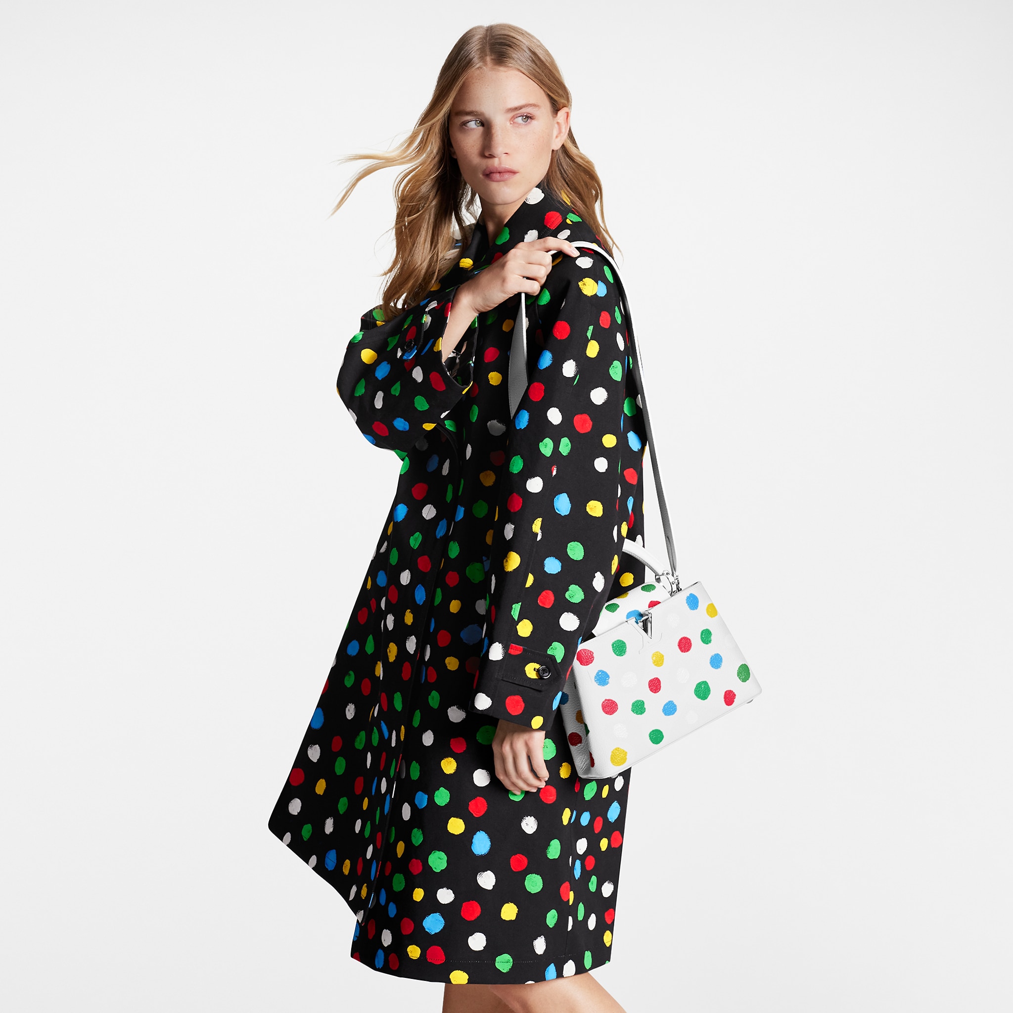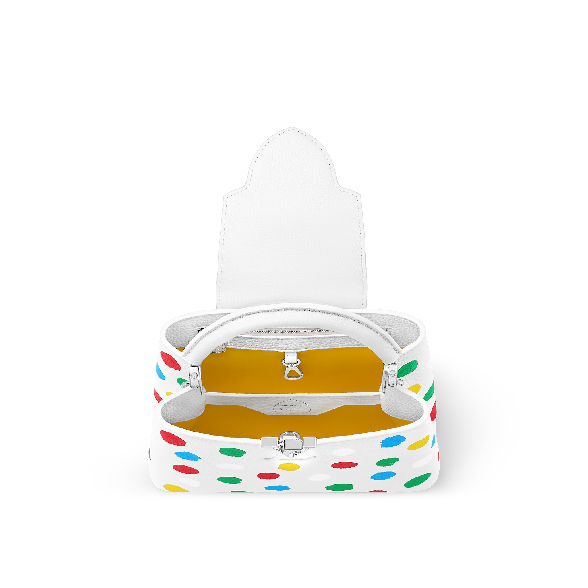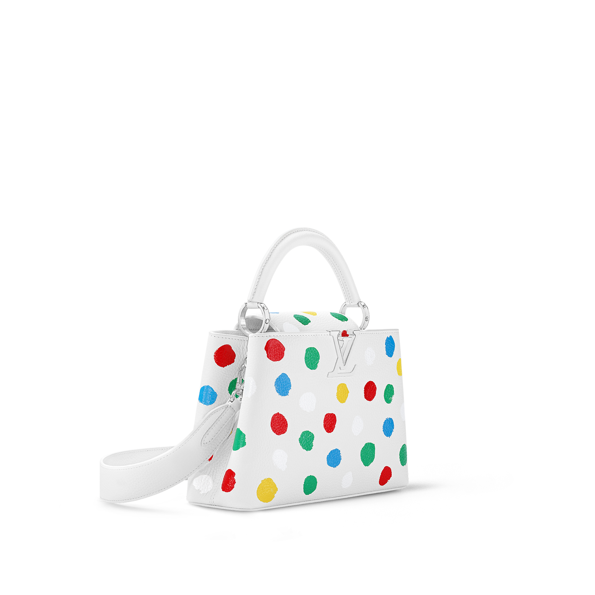 For the exclusive new Louis Vuitton x Yayoi Kusama collection, the LVxYK Capucines BB comes with a high-spirited print that echoes the revered Japanese artist’s obsession with dots. A recurrent motif in her work, they appear here in a whole spectrum of colors, screen-printed with a subtle relief effect on fine, supple Taurillon leather. A collector’s bag and a celebration of timeless art and craftsmanship.