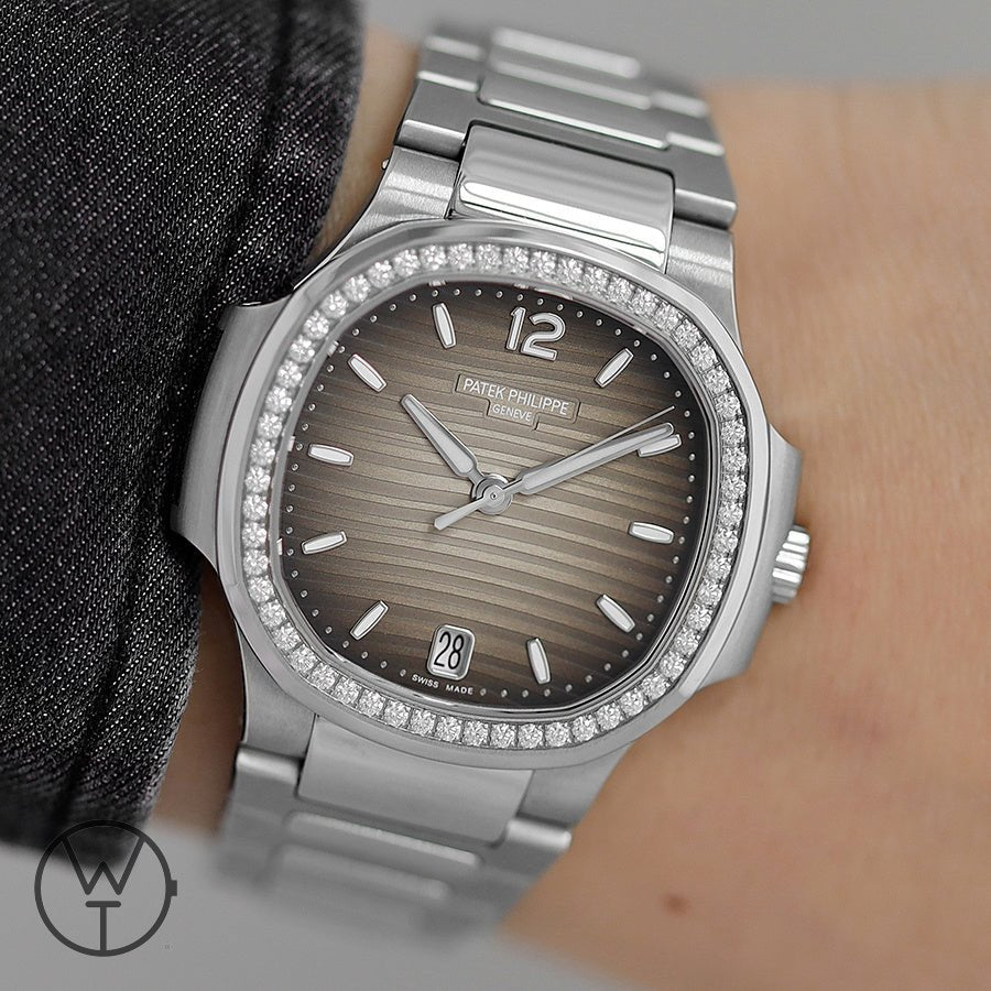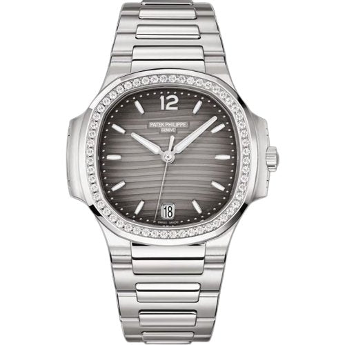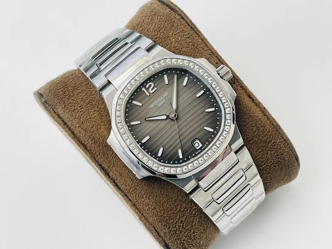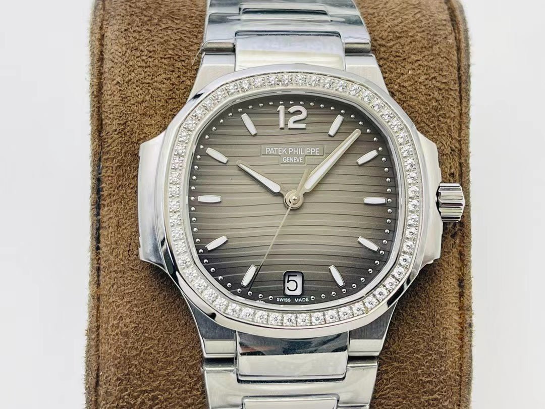 とグレーのオパリン、ブラックのグラデーションダイヤルを備えた35.2mmのステンレススチールケーシングが真新しく、ステンレススチールのレディース自動ノーチラス腕時計は、そのカジュアルなエレガンスと銀色のオパリンダイヤルを備えた非常にフェミニンなスタイルを強調し、やさしく起伏のあるエンボス加工の装飾は、ノーチラスの紛れもなくおしとやかな解釈を強調されたモデルでございます。