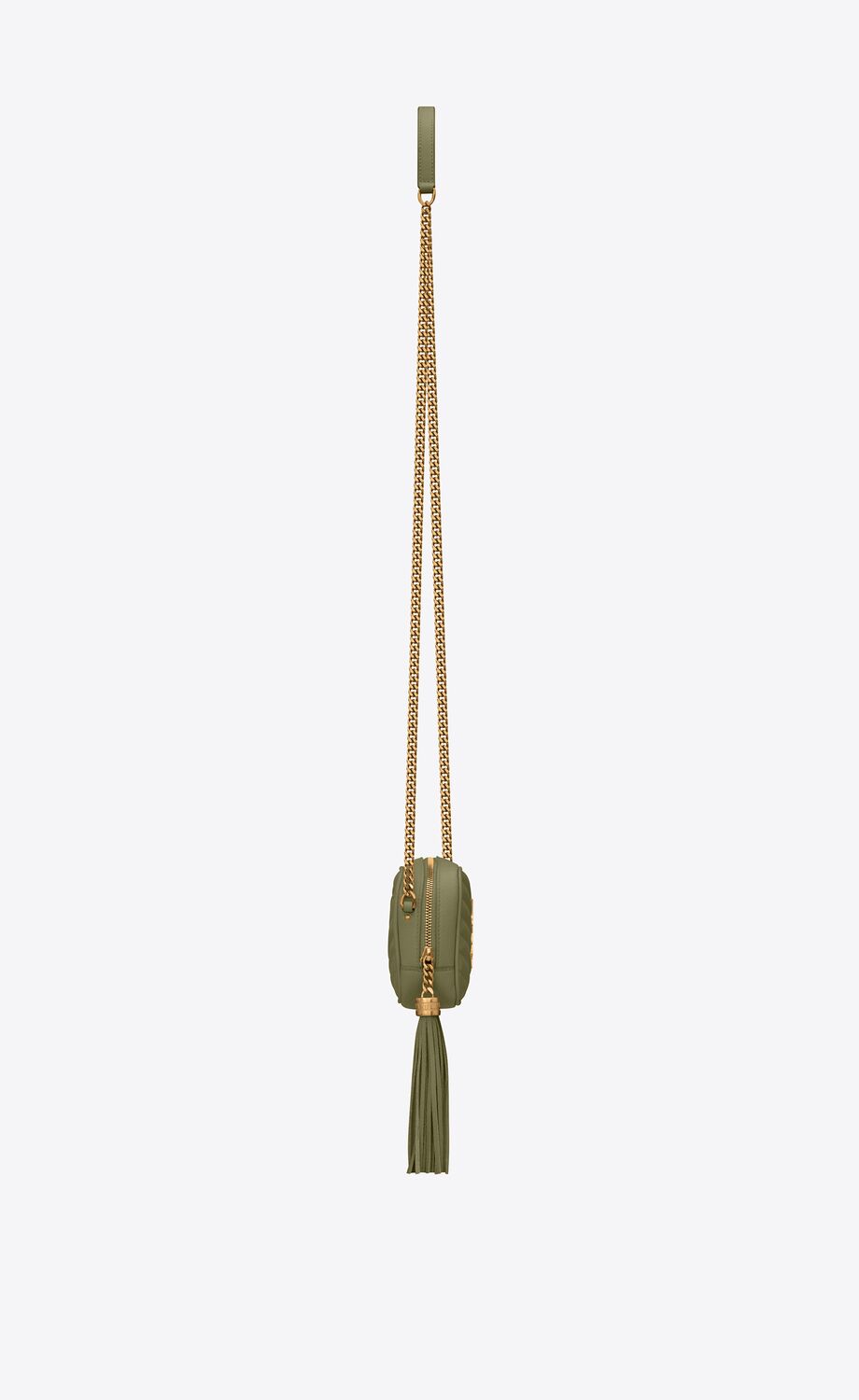 - Leather and chain shoulder strap