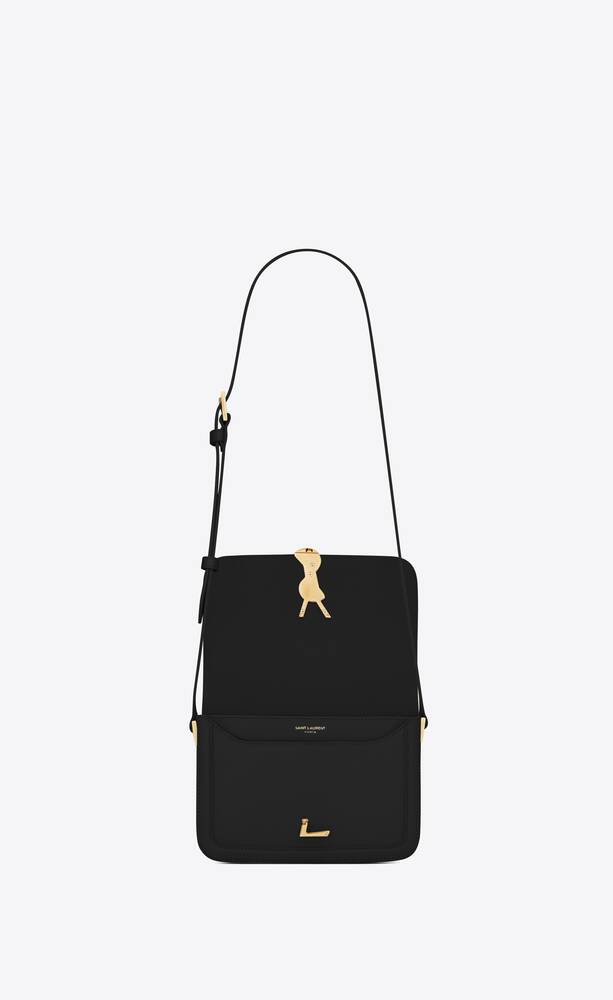 SAINT LAURENT MONOGRAM SMALL SATCHEL BAG WITH FRONT FLAP AND PIVOTING METAL YSL CLOSURE, FEATURING AN ADJUSTABLE SHOULDER STRAP.