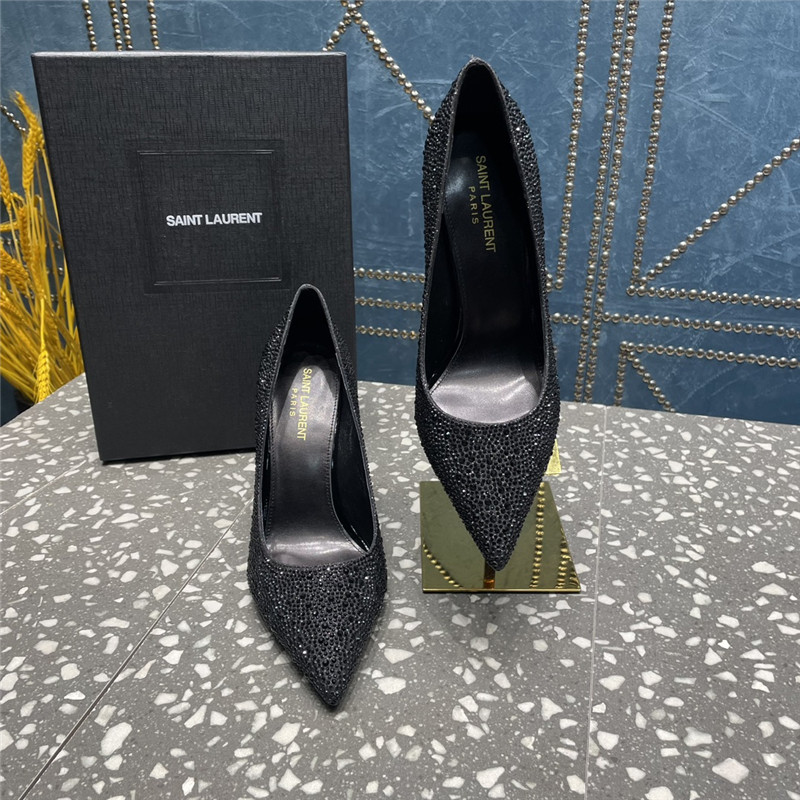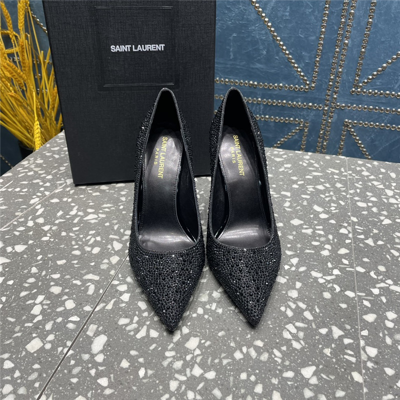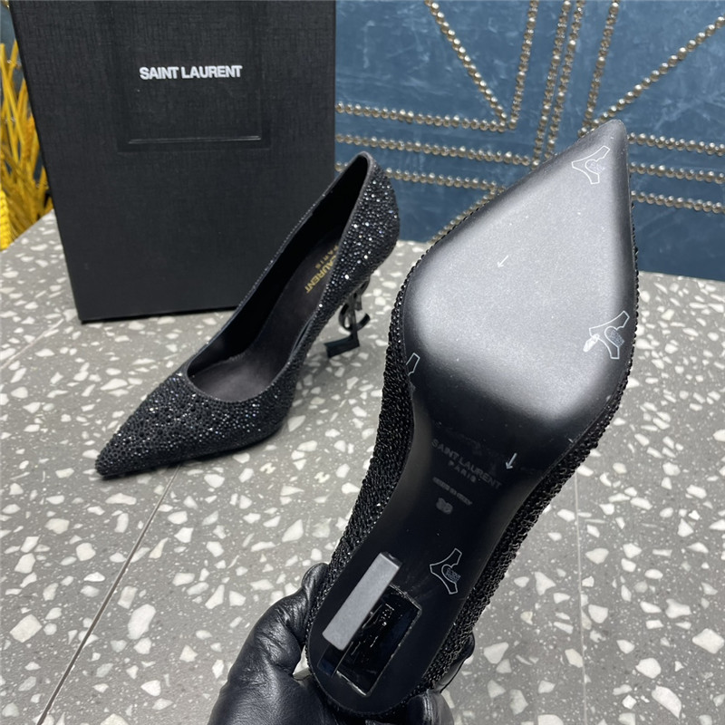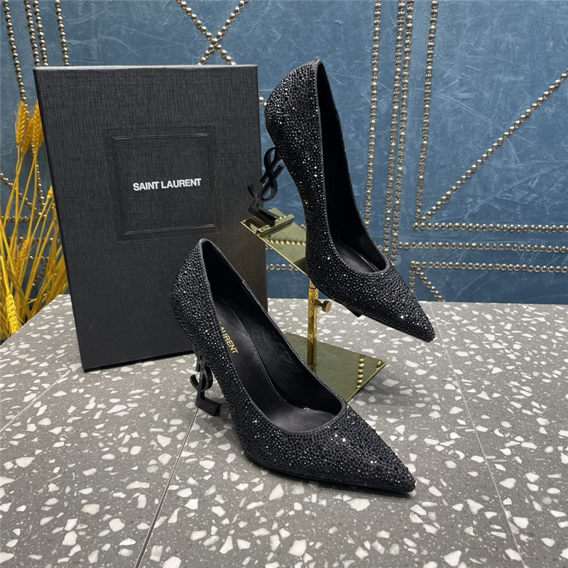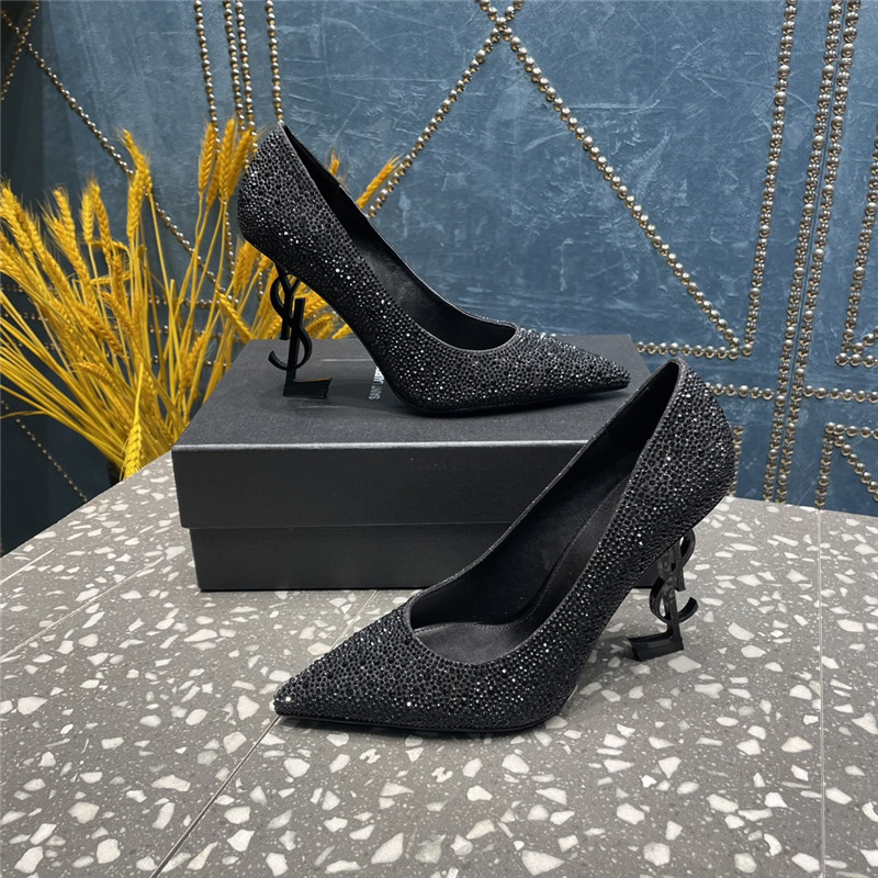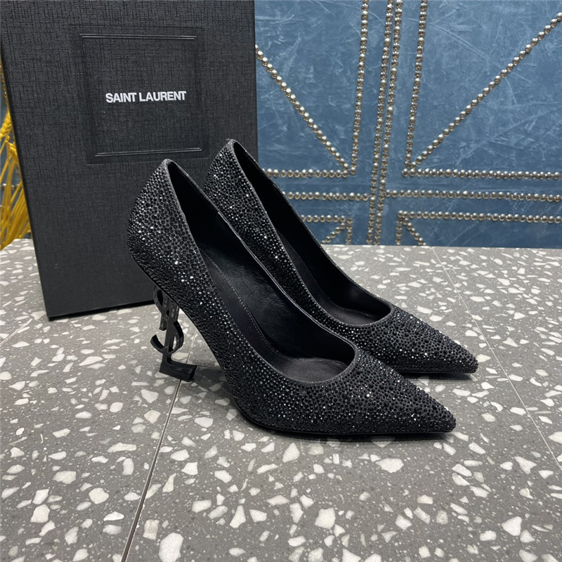 . YSL rhinestone high heel classic logo letter high heel sandals